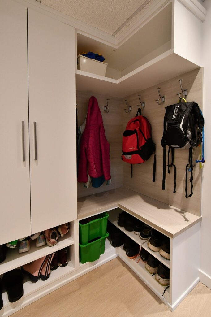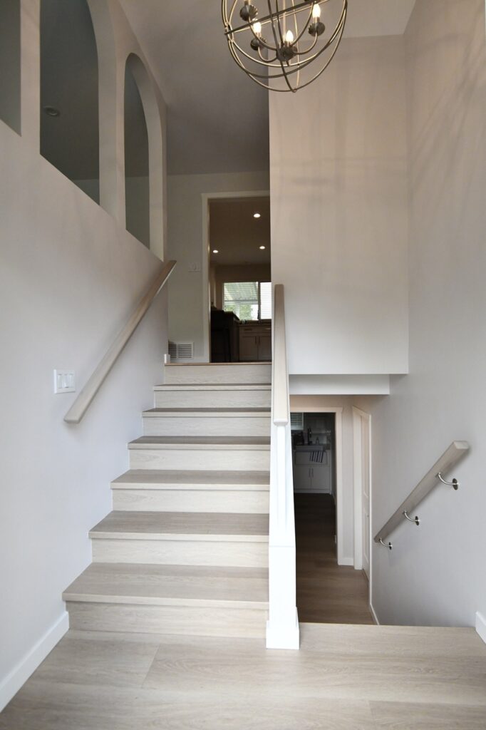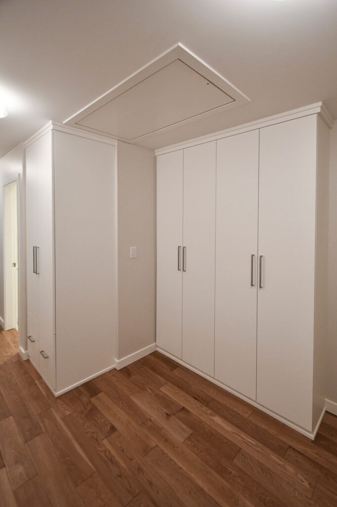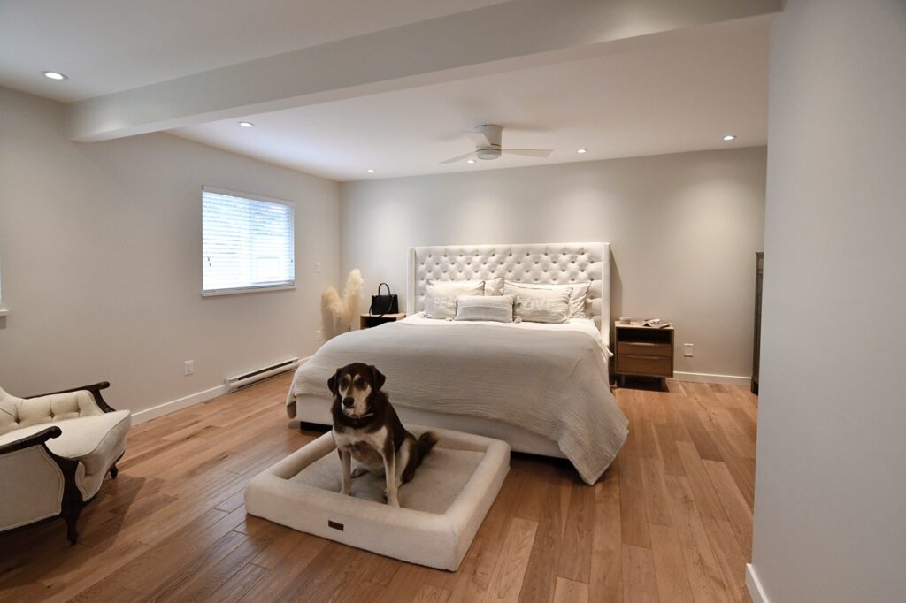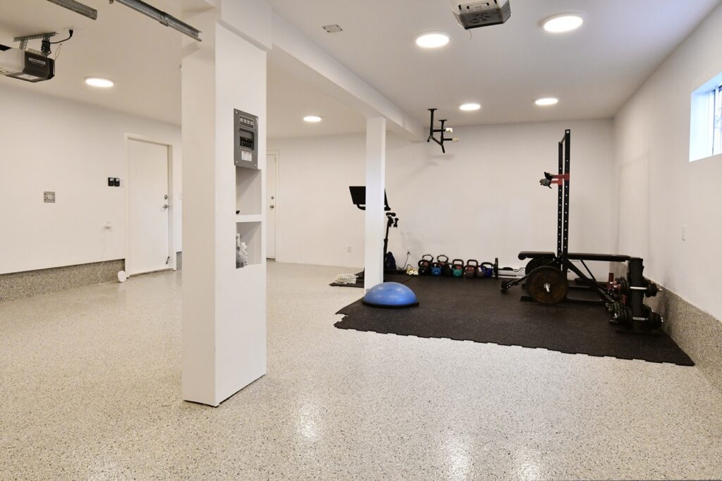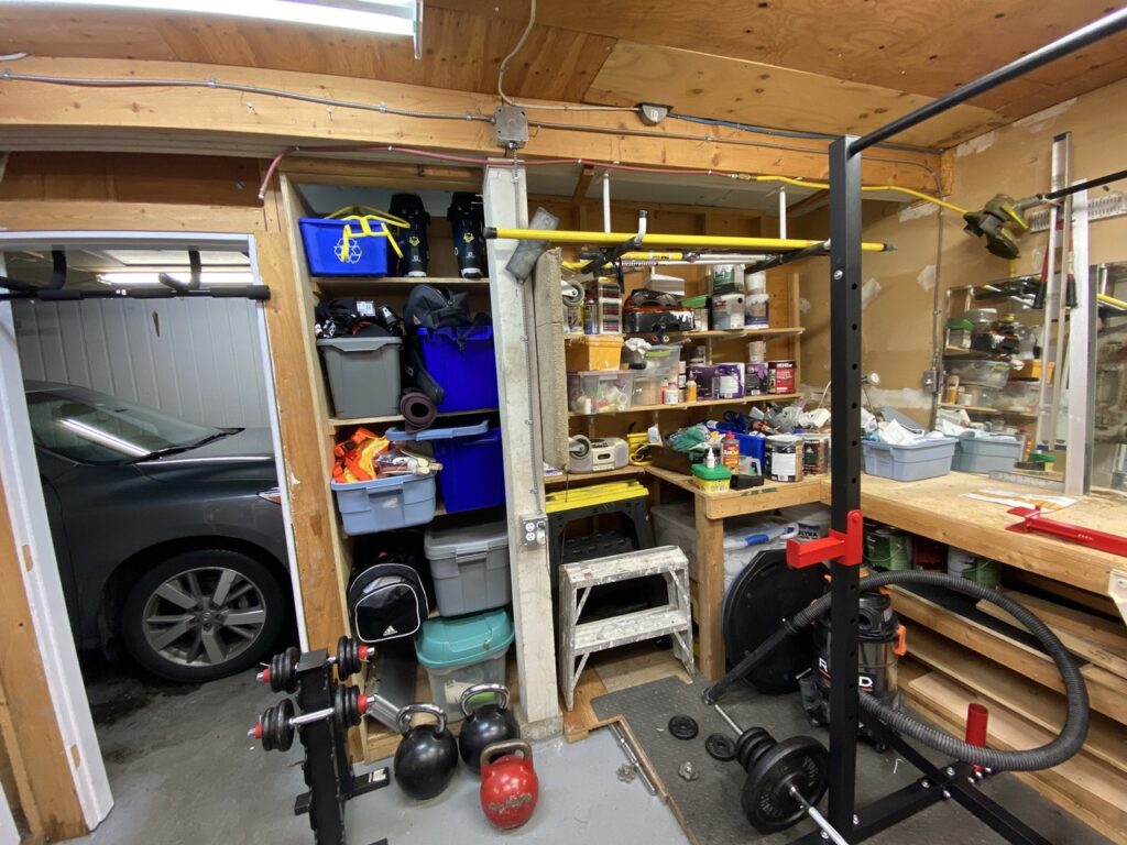 - The primary suite was reconfigured to add the ensuite versus open floor space. The expanded hallways provided increased storage and convenient attic access. Garage renovations turned the space into a finished two-car garage with epoxy flooring, levelled concrete, EV charging, and a designated gym area with rubber mats.